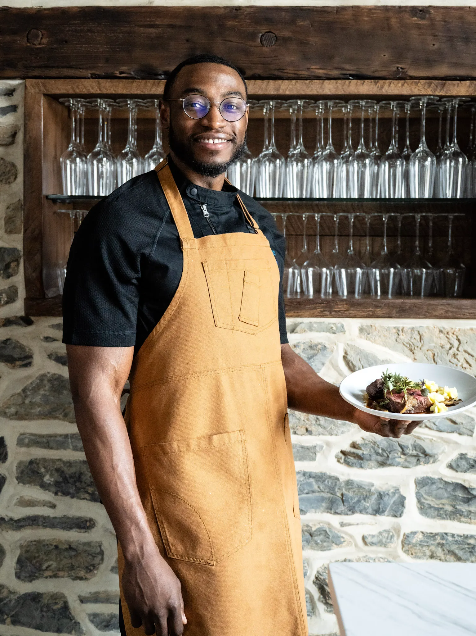 This dish tells my story from my roots in Cameroon to my journey as Executive chef at the Bavarian inn. The filet is seared in palm oil, a familiar flavor from home, and finish it with a black Mbongo spice jus that brings an earthy & umami depth to the beef l. Ramps foraged from the Appalachians are folded into spaetzle, connecting the German heritage to the landscape around me. Asparagus from Mackintosh Farm connecting locally sourced produce and restaurants. A fusion of cultures, seasons and most importantly community.